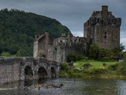 It’s our first full day here in Scotland and we start with visit to a Scottish icon, Eilean Donan Castle. Eilean Donan is one of Scotland’s most recognizable landmarks given to the many movies that have been filmed here. It is one of the most photographed castles in Scotland, which is understandable since it is as we all remember the castles of our dreams as youngsters, imagining being a knight in the days of old. It is perfectly situated at the end of a long stone bridge and sits out on its own island, a most ideal setting for any nobleman or noblewoman. The castle has been renovated and much of it dates back to the 20th century, when Lieutenant Colonel MacRae devoted his life to rebuilding the site and reclaiming it for Clan MacRae.