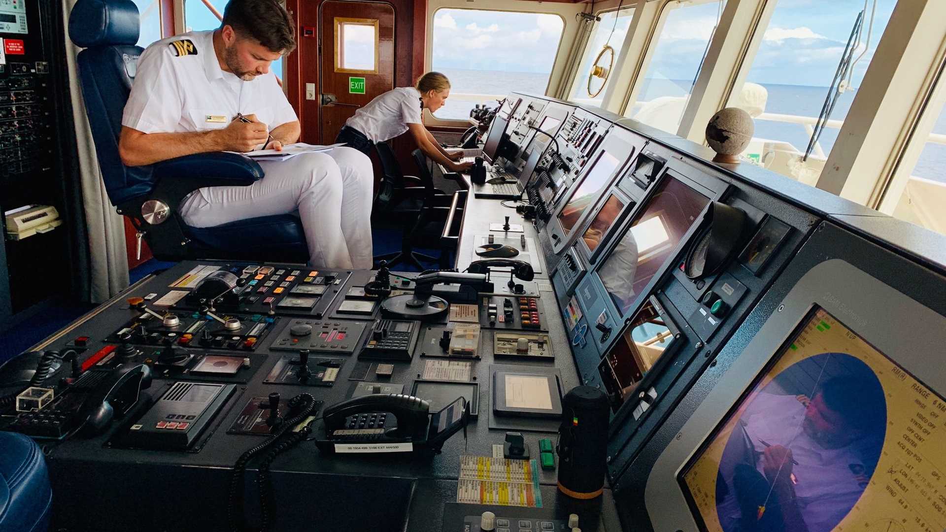 After the excitement and ceremony of crossing the equator yesterday, we woke up slow and refreshed this morning. Wanting to get outside and stretch, we wondered aft, where we found our expedition leader Jimmy White and dive master Beau Price in a session of coffee and yoga.