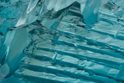 Endicott Arm is a fjord that cuts deeply into southeast Alaska’s side. Most of Alaska is accretionary, meaning that it is formed of rock plastered to the edge of North America through the subductive process. But far into the mountains we find “the roots of subduction”—plutonic rocks like granite and gneiss. These rocks have never been smashed up by accretion, and are very durable. Thus, they are a glacier’s finest sculpting material. Elsewhere in Alaska glaciers carve fjords with fairly open walls, but here in Endicott Arm the rock walls soar thousands of feet, nearly straight up from the water’s edge. Deep striations have been cut into rock of beautiful striped patterns. And hidden in the clouds stand rounded peaks, reminding us that no matter how impressive the topography, all was smothered in ice not so many thousand years ago.