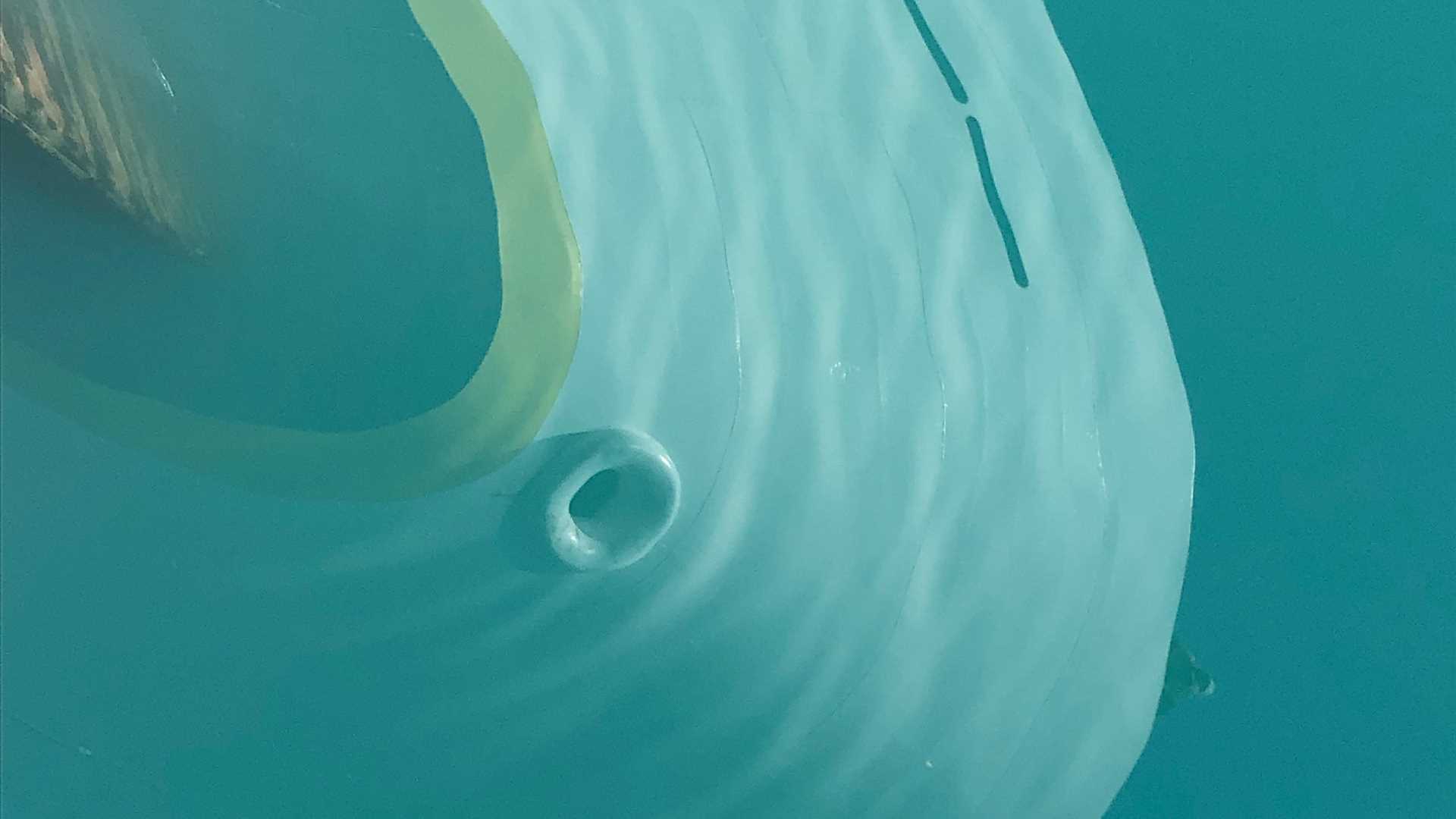 National Geographic Venture crosses the bar at 6:00 a.m. as it enters Endicott Arm. The bar is the terminal moraine created by the retreat of the Dawes Glacier, which is the day’s destination.