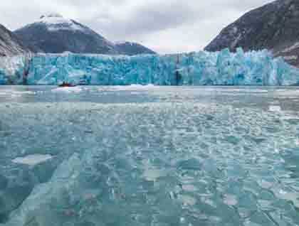 There truly could be no better way to conclude our expedition in Southeast Alaska than to spend the day surrounded by the features left behind by the very force that shaped this part of the world. That force would of course be glaciers, so integral to nearly every aspect of what we've experienced this last week. Our day began as we sailed up the southern fjord of f Holkham Bay, named Endicott Arm. This nearly 30-mile-long fjord situated off the mainland of Southeast Alaska is one of the most beautiful and dramatic settings to experience by ship. The sheer granite walls polished smooth by the massive glacial complex that once covered nearly all of the surrounding mountains and was over a mile thick during the last ice age. Now remnant hanging glaciers can still be seen perched high above the fjord with their characteristic U-shaped valleys bellow giving evidence of the glacial past. But perhaps even more impressive than the shapes, textures, and the myriad of waterfalls cascading down the granite walls would be catching first sight of the Dawes Glacier as it appeared around one of the many bends in the fjord. As we navigated closer and closer, the glacier still miles in the distance, we could see the twisting river of ice with the dark ribbons of medial moraines terminating at the water’s edge. As grand a sight as this was we decided to take it one step further by lowering our inflatable boats and setting out to get an up close and personal look at the Dawes Glacier. It is from this perspective that the scale, grandeur, and magnitude of this landscape would come into sharp focus for us all. The glacier itself is fed by the massive Stickeen icefield and though it once was much larger and filled this entire fjord it still runs over 20 miles in length from centuries old snowfall up high in the mountains until it sheds its icy burden in the rich waters of Endicott Arm. With the near ever present rain falling, harbor seals swimming about and lounging on the ice flows cast off from the glacier, we gazed in awe at the over 100 foot wall of rich blue ice, the occasional rumbling of “white thunder” as the Dawes Glacier creeps towards the sea.