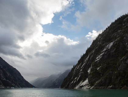 What better way to start a voyage in Southeast Alaska than to experience a sampling of its grandeur? As day broke National Geographic Sea Lion was making her way up Endicott Arm towards Dawes Glacier. This narrow fjord is part of the Tracy Arm-Fords Terror Wilderness and is a classic example of a glacial U-shaped valley, with its smooth peaks that plummet down to the sea. We spent the early morning on the bow watching icebergs float by, and even had the good fortune of moments of blue sky peeking through the clouds. One beautiful scene after another played out before us as we neared the glacier.