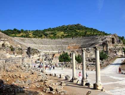 We started our visit at the upper gate of the ancient city passing between the columns of the Stoa of Basileios and into the Odeion, which was used both as the city council hall (Bouleuterion) and a concert hall. We continued down to the Monument of Memmius and the Gates of Hercules both of which are located along Kuretes Street, the main avenue of Roman Ephesus. Over the past decades the Austrian archaeologists, who have long held the excavation permit for this site, have partially reconstructed various monuments along this street including the Temple of Hadrian and the Fountain of Trajan, as well as the magnificent façade of the Library of Celsus.