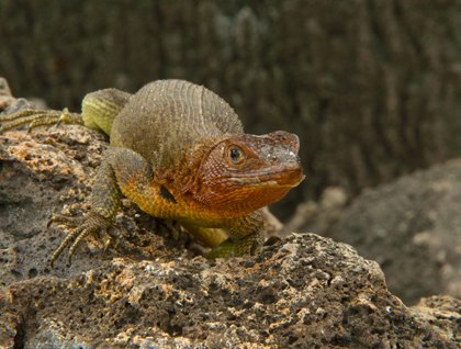 Navigation brings us to the western area of Española where Punta Suarez is found. In this archipelago a diverse biodiversity is not found, however, fascinating mixes of unique species have developed in this “world among itself.” As we venture along the path we have to step over marine iguanas that are warming their tepid bodies after a foray into the cool waters to feed upon algae. Red-billed tropicbirds awaken our senses with a high-pitched screech while flying overhead searching for nesting areas along the cliffs. During this “dry” season, matted dry grass and skeletal croton bushes surround the boulders on the path. Mockingbirds follow us looking for any opportunities we may present i.e. food and water.