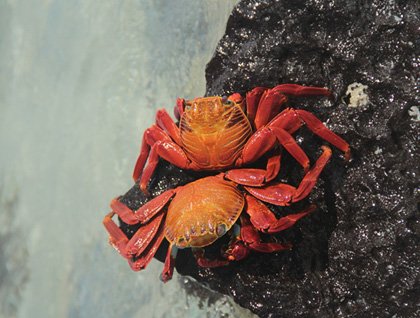 Punta Suarez is a highlight for wildlife. Different species of sea birds nest along our trail, such as blue-footed boobies and Nazca boobies. Reptiles are well-represented as well - the marine iguanas are the most colorful on the islands and the lava lizards here are the largest of the archipelago! We even got to spot an elusive snake as he headed away from our trail.