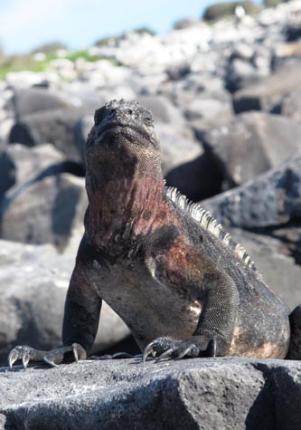 By midday, we all returned to National Geographic Endeavour. We weighed anchor and navigated west by southwest toward Punta Suárez, one of the most spectacular places in the Galapagos for wildlife. The area is bathed by highly productive waters and, therefore, many marine birds inhabit Punta Suárez. Upon setting foot on the island, the place teemed with life: black-colored and red-colored marine iguanas basked in the sun after a hard day’s work of feeding on local algae. Young Galapagos sea lions leaped around in the shallow waters, joyfully playing with each other. Meanwhile, a lone Galapagos hawk observed the entire area.