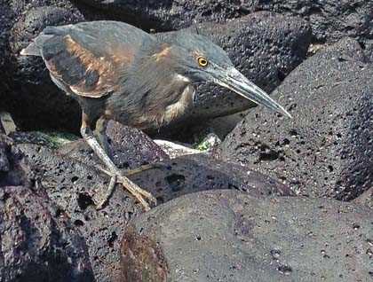 After a short navigation we arrive to Suarez Point on the western area of this relatively small island. Here we find a density of life that occasionally blocks our national park trail. Marine iguanas are draped over the rocks as they try to warm up in the afternoon sun. The Española mockingbirds make another appearance and they follow some of our hiking groups. We find along the coastal cliffs Nazca boobies and the occasional blue footed booby. As all concentrate looking out over the ocean we find a great deal of air traffic with Galapagos shearwaters and red billed tropic birds avoiding collisions at their breakneck flight speeds. A number of Galapagos hawks are spotted with a few young ones eyeing us, possibly considering whether we are a food source or not. At the southern cliffs we feel the sea spray in our faces as waves are crash into a crack in the lava flow and explode into a cloud of water vapor. Larger more elegant birds are spotted cruising on the updrafts along the cliffs. As we head inland, the majestic waved albatross of Galapagos is found nearby with some large, ungainly chicks awkwardly walking and awaiting food from their parents. After a full day we all have a great deal to take in as we hike toward our floating home. The experience is not over, however, as the sun dips in the distance. A sea lion gives birth on the trail in front of a surprised group! It was an amazing finish to an amazing day.