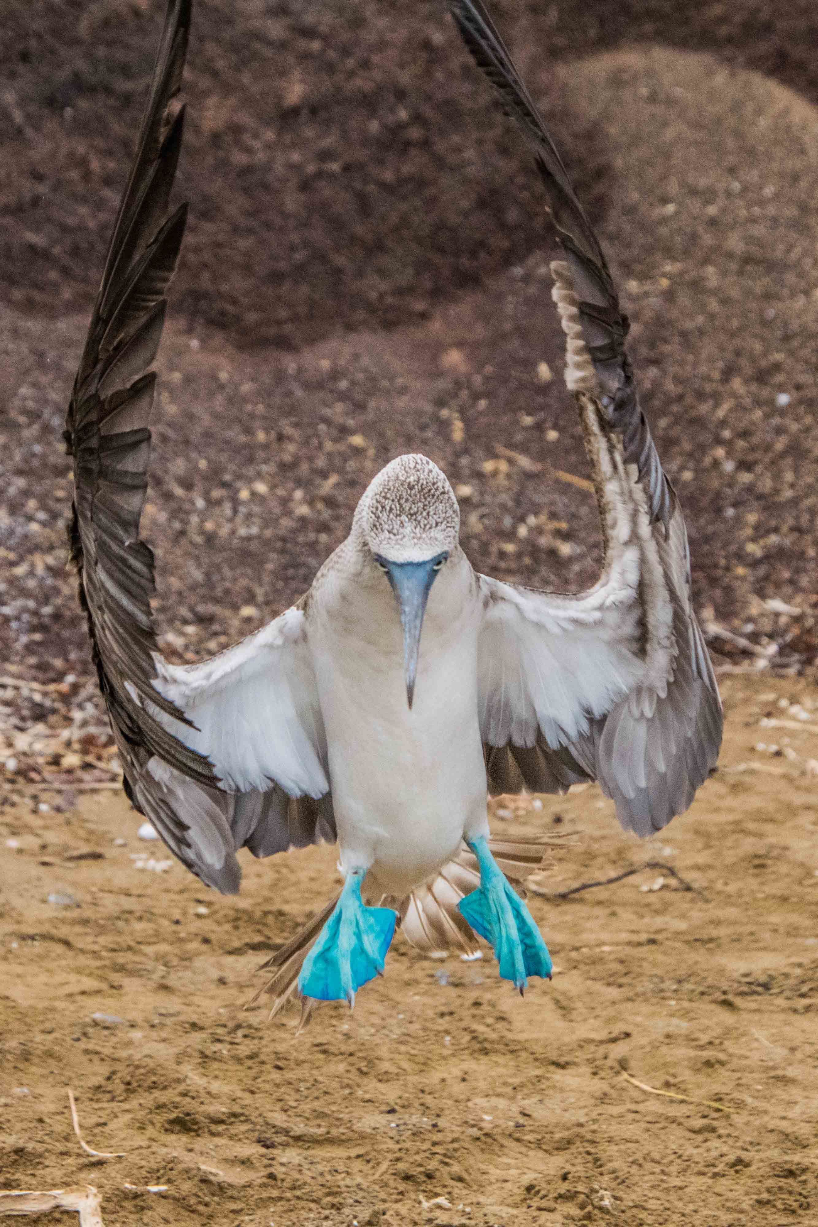 In the afternoon, our photo instructor gave an interesting talk. After a short navigation and having had some time to rest and recharge our batteries, we arrived at Punta Suarez. This visitors’ site is located in the westernmost point of Española Island. Here, the abundance of wildlife is overwhelming. We were instantly surprised by the profusion of life as we landed. Colorful green and red Española marine iguanas and many Darwin finches were seen. Many young sea lion pups were admired while playing cheerfully in the shallows. Some intrepid walkers moved farther along the inland exploring a rocky trail. High cliffs are home to many seabird species like Nazca boobies, hawks, shearwaters, red-billed tropicbirds and swallow-tailed gulls. Nazca boobies are endemic birds to the Galapagos. The waved albatross is another unique creature that inhabits the Galapagos from April to December to reproduce. We saw them practicing their intricate and well-elaborated courtship, one of the most stunning among seabirds in the world. Many of their babies were ready to get food from their parents, they feed on 5 kilograms of a very nutritious oil that allows them to grow quickly. By December, they will reach adult size and leave the island for five years.