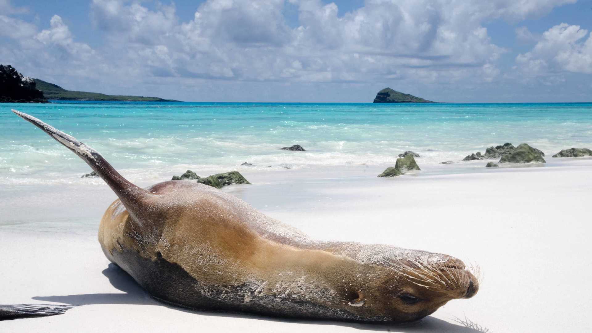 We woke up early in the morning as National Geographic Islander navigated along the northern part of Isabela Island. Slowly the sun appeared above the clouds surrounding Volcano Wolf. We spotted our first birds as Galapagos fur seals returned to shore from their night hunt. We enjoyed a great breakfast. Afterward, expedition leader Vanessa called everyone to the bow to celebrate as we crossed the equator. Our guests happily crossed the line. Approaching Punta Vicente Roca, the visitor site, we spotted Galapagos sea lions and a good number of ocean sunfish. The first activity of the day took place as we dropped anchor at Punta Vicente Roca. This is a spectacular geological site. The combination of the former volcano’s tall cliffs and the tuff cones formed later adds an amazing contrast to this unique visitor site. Our best tools for exploration, our Zodiacs, were lowered down, and off we went to explore the coast. We observed Nazca boobies and blue-footed boobies resting on the small ledges of the tuff cones. Galapagos sea lions swam close to our Zodiac, and Galapagos penguins rested on a broken piece of the tuff cone after feeding. What a wonderful sight! In a calm area, we found a good number of Pacific green sea turtles. The morning’s activities ended with snorkeling. Pacific green sea turtles, plenty of colorful fish, Galapagos marine iguanas and flightless cormorants surrounded us. It was a phenomenal experience! The ship was repositioned toward Fernandina Island. The youngest island of the archipelago, Fernandina is a highlight of our expedition. This island shows our guests the beginning of life. We observed animals thriving in the hostile environment. Pioneer plants like lava cacti grow on the lava fields, breaking down rocks little by little to create soil for the next generation of plants. Punta Espinoza is known for its huge colony of Galapagos marine iguanas. It is hard to distinguish the iguanas from rocks since they are so dark in color. On the other hand, colorful Sally Lightfoot crabs added contrast to the young, dark lava fields. We ended our walk as the sun was setting, returning to the ship with great memories. It was a fantastic day in the western part of the archipelago.