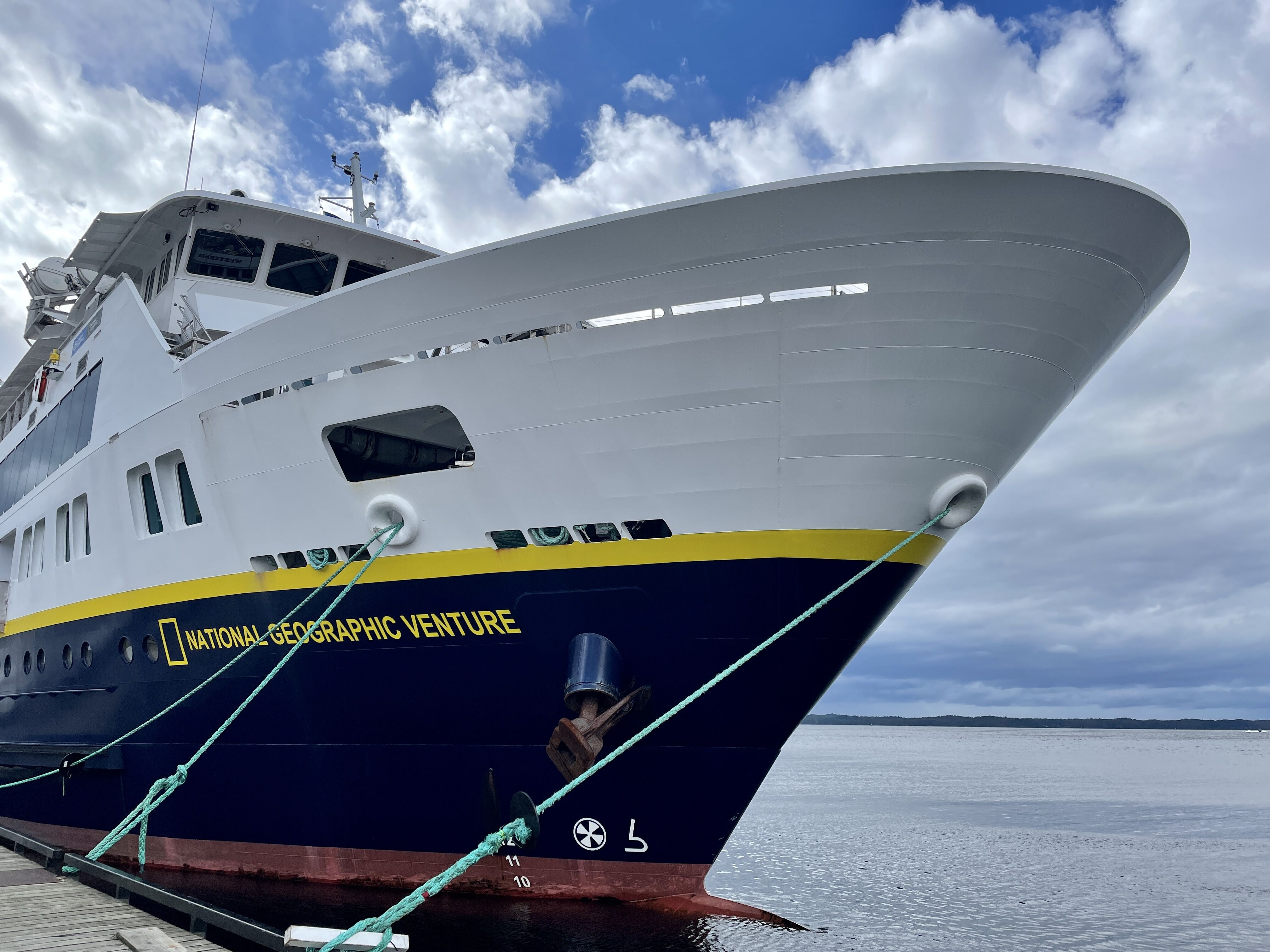 We woke up to super calm waters off the northern coastline of Floreana Island. Perfect conditions for a bit of kayaking among the offshore islets near Post Office Bay! Brown pelicans, egrets, green sea turtles, and red, black, and white mangroves…a peaceful environment for an hour or so before breakfast. Some guests went straight to the beach to walk a few yards through saltbushes and found themselves facing the famous “barrel” of Post Office Bay. It’s been over a century since the barrel was first placed here for use by whalers to exchange correspondence and carry back letters of business, or perhaps letters to loved ones. Today, postcards fill the barrel, but the turnover is fast. Each day, some of the postcards are taken for delivery while others are left behind in hopes that someone will continue the tradition and hand-deliver them in the weeks to come. Between breakfast and lunch, we played in or on the water around Champion Islet, just to the northeast of Floreana Island. We didn’t make a landing but explored by Zodiac, including a birdwatching circumnavigation followed by deep-water snorkeling in incredible waters with parrotfish, angelfish, pufferfish, damselfish…all kinds of fish! Sea lions buzzed by, desperate to draw attention and get a reaction out of us, which they did. Squeals and shrieks were heard. After an instructional briefing on iPhone photography and a presentation on Charles Darwin in the afternoon, we went ashore on the main island of Floreana. There has been quite a drought this year and not much rain the previous year either. The land was dry, the vegetation was brittle, and dead leaves were everywhere. But all that is fine for the native and endemic species; after all, they’ve been through this before, over the millennia, and survived. The stress is on the introduced species who depend on higher amounts of freshwater for survival. While their defenses are down and populations are stressed, now is the time to really push for programs to eradicate introduced species. Floreana Island is ready for restoration. The National Park and collaborating NGOs are preparing Floreana to receive native species that were once thought doomed for extinction. Giant tortoises, Floreana mockingbirds, and racer snakes may yet survive and prosper with the help of these organizations. We spent the afternoon following an easy trail from a dark-colored beach of mineral origin and over the isthmus to a white, organic beach where green sea turtles were riding the breakers offshore. The turtles are not quite ready to come ashore and lay eggs, as temperatures are still too low for another month or so. But a great blue heron and frigatebird were checking out the scene, just in case someone tried for an early nesting. It will be a couple months before hatchlings try to race to the ocean in the dark of night. We returned to our base of operations as the sun set low on the horizon. National Geographic Islander II was waiting for us with hot water and the comforts of home.