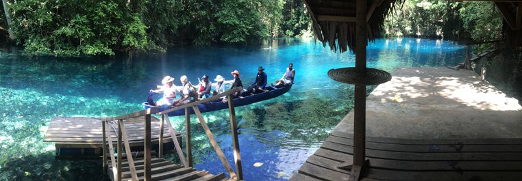 The fourth and final group loaded into a series of dugout canoes for what felt like one of the most scenic and peaceful paddles imaginable. We followed the crystal clear blue waters of the Riri River, the silence punctuated by cheerful bird and insect songs. Our destination was the Paradise Lagoon swimming hole at the end of the river, where we unloaded for a late morning swim. The rope swing was particularly popular, as everyone tried out their greatest Tarzan moves from the tree platform to the water.