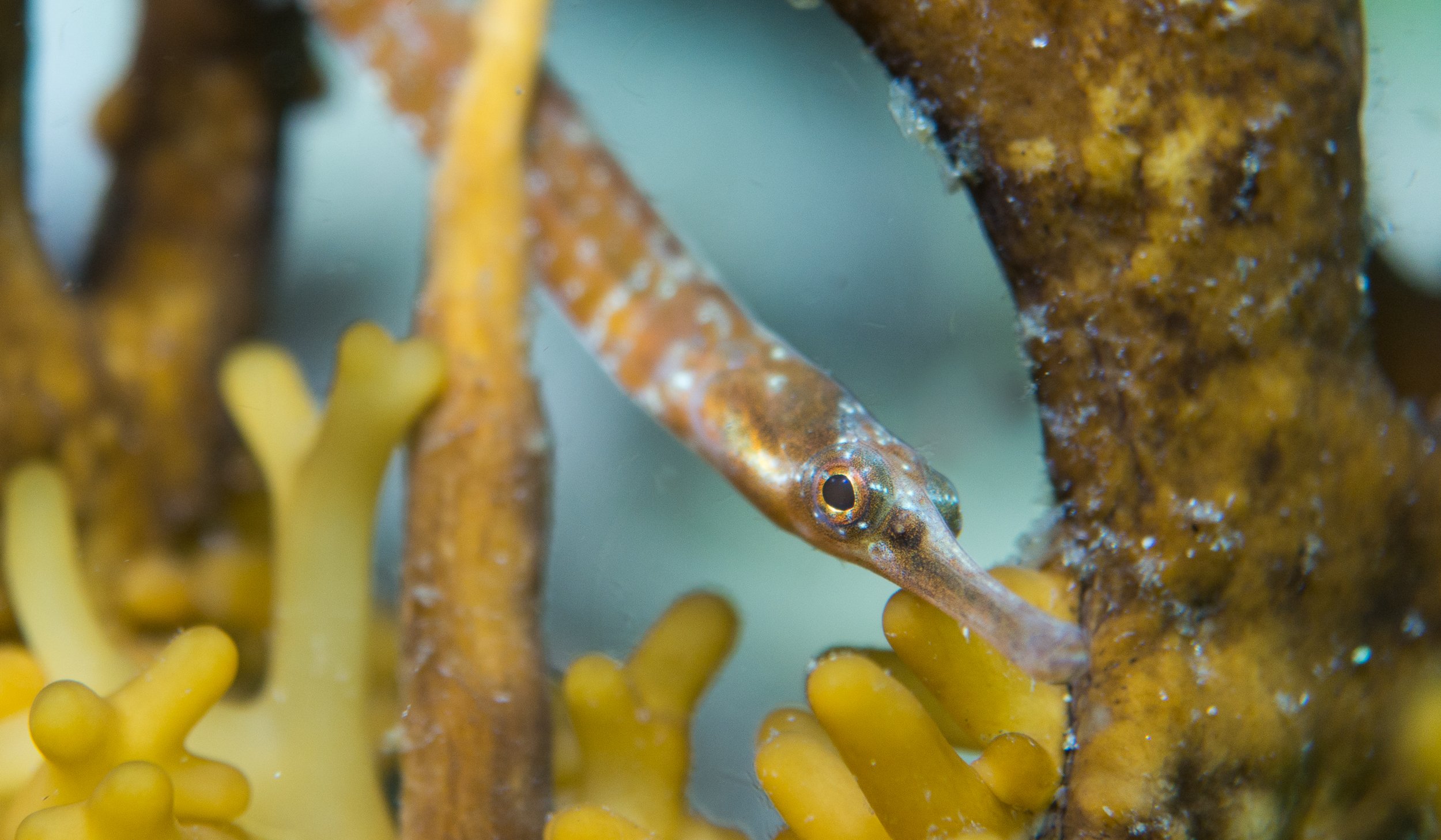 While the expedition day was going smoothly, the dive team took off to explore the depths. This area of the world is extremely rich with oceanic wildlife. The Humboldt Current rips through the Pacific, delivering cold water and the plankton community to not only the northern hemisphere, but also South America and the Chilean coast. With plankton as a community of primary producers, the rest of the marine ecosystem can grow, sustaining and expanding the food web. The team found a nice spot, with rocky edges and a bit of a kelp forest. The dive proved beautiful, showing anemones, feather-duster worms, sea urchins and southern king crabs. A Southern sea lion came in close for a quick visit, but just as rapidly receded into the dark water. A pipefish at the end was a nice surprise. With a body plan like seahorses, long slender bodies are not great defense against predators. To combat this issue, they spend much of their time in the protected lair a kelp’s holdfast can offer.