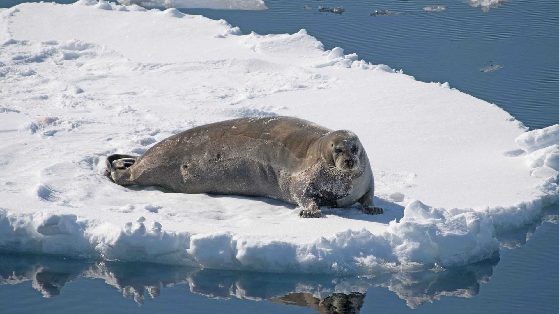 Our goal today was to find a polar bear, not easy when you consider the vastness of the ice and the limitations of traversing it in a ship. But our ship’s officers are not easily deterred, and they were as determined as they were skilled. Often we would pass a piece of ice with the fresh footprints of our prize, but the hours went by, and still no bear. At least there was beauty all around us, and none could deny the hypnotic effect of the ice. As is often the case, our guests come for the wildlife, and fall in love with the ice. The searching did bring another prize, a bearded seal that let us venture very close indeed. Our Captain showed us that even with a four hundred foot vessel, he could stealthily approach a seal lying on a piece of drift ice without ever disturbing the seal. The mark of a good naturalist. We watched for a while and then, as carefully as when we approached, our ship backed away, leaving the seal undisturbed.