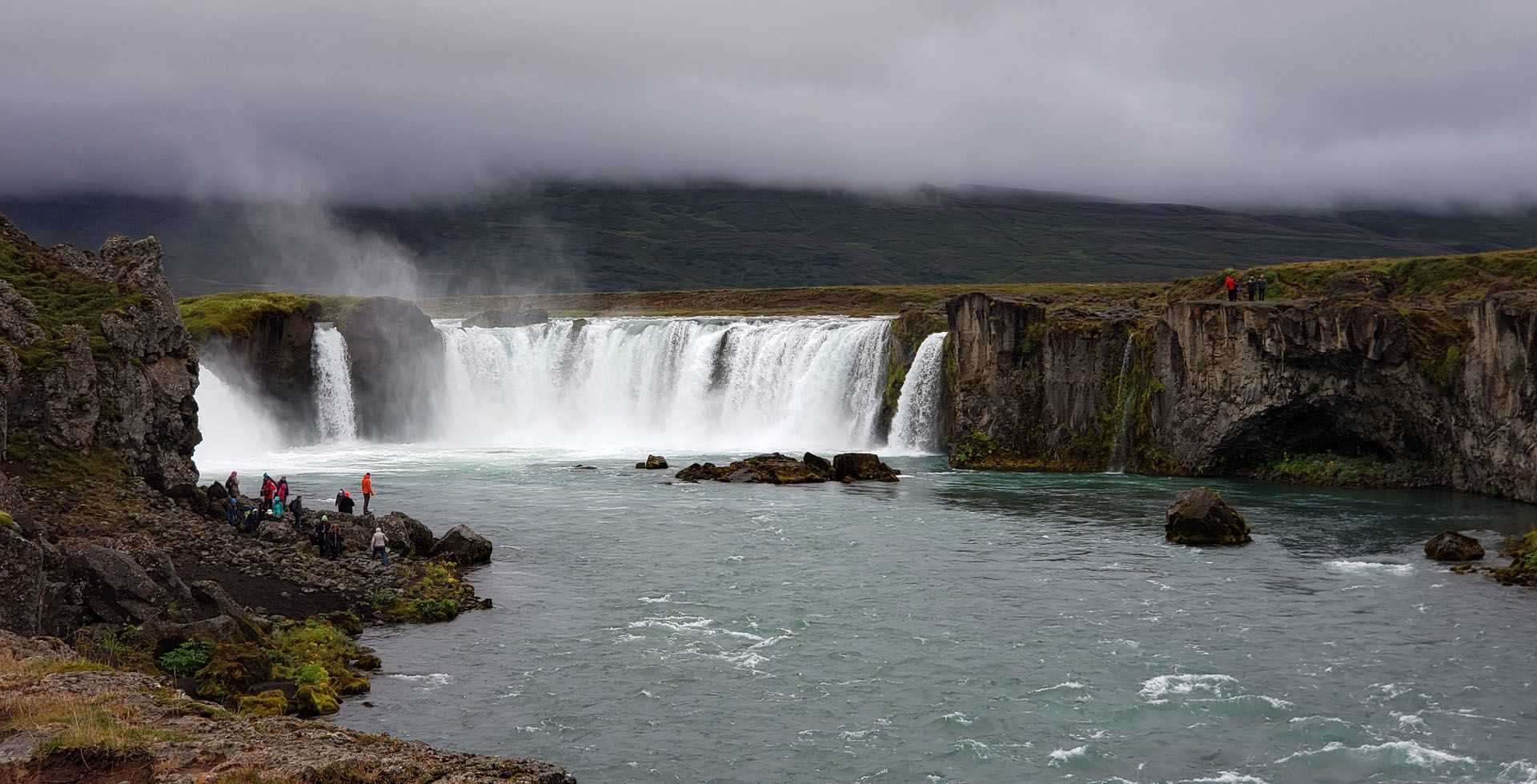 Our first stop was the powerful, semicircular Goðafoss waterfall, which carves a narrow gorge in local columnar basalts providing dramatic views of both the cascade and the downstream river itself. With a magma reservoir only two miles below the Earth’s surface, the Krafla hotspot shapes this landscape, creating hot springs, bubbling mudpots, steaming fumaroles, bold-colored sediments, and other volcanic structures. All tours walked among the lava pillars of Dimmuborgir, followed by a visit to the geothermal features. Those interested in a more vigorous hike also went to Hverfjall, a tephra crater more than 1km across that formed over 200 years of explosive eruptions.