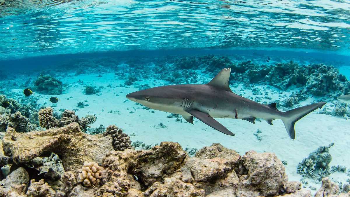 Dawn found National Geographic Orion at Tumakohua Pass, which gives entrance to the atoll at Fakarava. This atoll is one of 7 surrounding atolls that have been designated as a UNESCO Biosphere Reserve for the preservation of rare species. Our early morning scouting boat and SCUBA divers had the chance to swim with many white-tipped and black-tipped reef sharks along with literally dozens and dozens of gray sharks in the shallow waters of this pass.