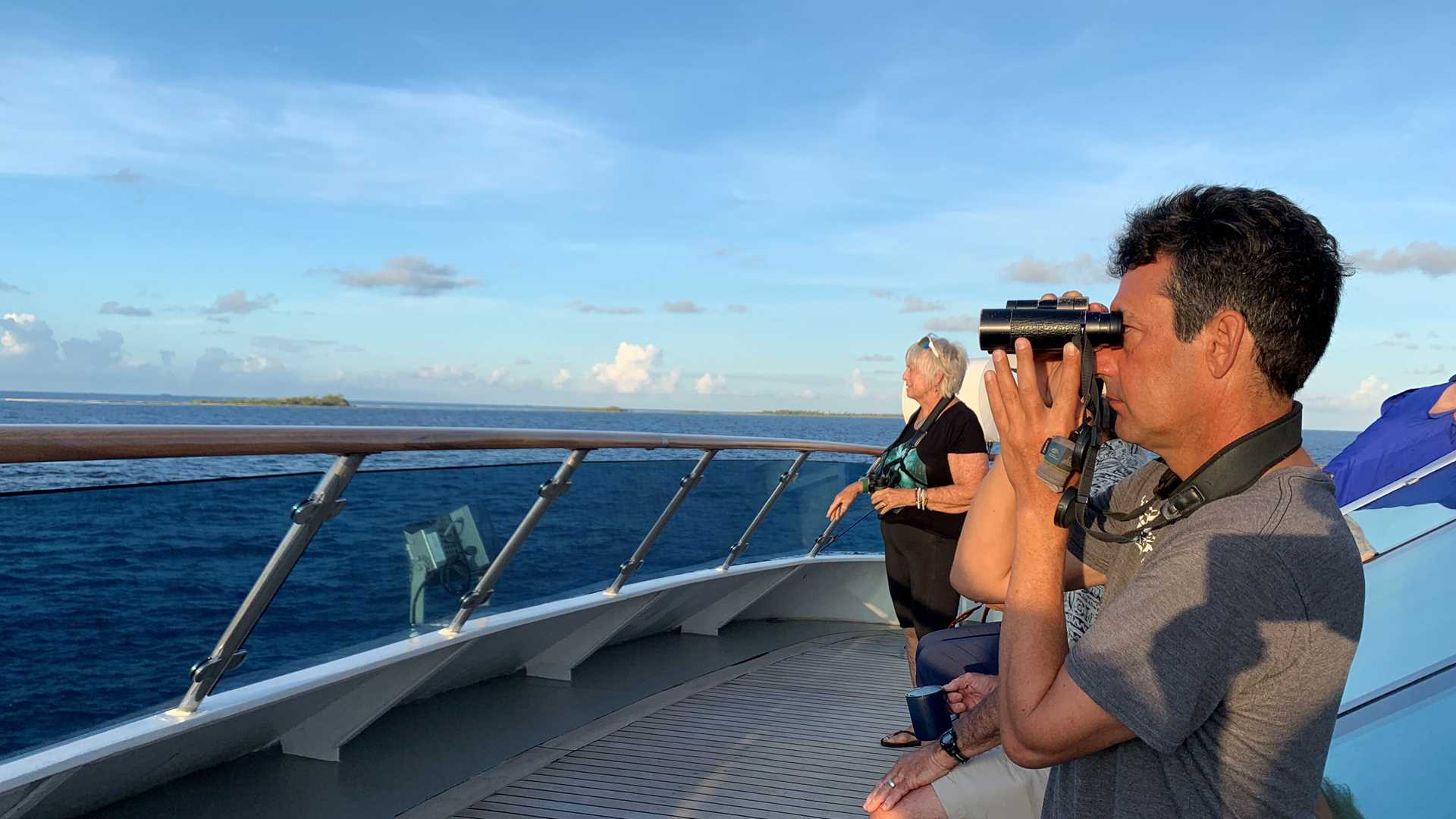 Entering the pass of an atoll in French Polynesia is always a beautiful way to start the day. This morning we arrived at Tahanea, a small island with no permanent population. The water here is some of the clearest our staff have ever seen in this region. With winds and currents to contend with, our divers found a beautiful site to spend some time underwater. They enjoyed a healthy coral reef, some sharks, and large fish. On their way back to the ship they even found some manta rays and jumped in the water to snorkel with them. The rest of us split into two groups: the hikers and the swimmers. The hike ashore was full of birds and plants to observe and photograph. The swimmers launched from the snorkel platform into crystal water where they poked around the coral heads and grew even more comfortable swimming with reef sharks. We had an afternoon aboard. We began with a presentation by our guest speaker Tom Ritchie about the most useful plants in Polynesia. At tea time, the hotel team put out 13 different sweet treats, not to mention the sandwiches and fruit. Before recap, undersea specialist James Hyde gave us a condensed history of the natural world—starting with the big bang! Tomorrow will be a busy day for us as we transit to some islands we have never visited before. So it’s quiet on board this evening as we all head to bed to rest up for whatever tomorrow has in store.