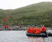 On National Geographic Endeavour II today, we explored Bartolome, home of a small colony of Galapagos penguins. Bartolome is one of the youngest islands, and it is located next to Santiago Island in the central part of the archipelago. After an amazing sunrise, we went ashore for a walk, and we were transported back to a time when the land was newly formed. We began our day by hiking to the top of a tuff cone known as the islet of Bartolome, named after the First Officer of The Beagle . Walking on this young island allowed us to understand the formation and volcanism of the Galapagos Islands. The rocks are a great way to understand the area and its geology. We spotted a few lava lizards and painted locusts, some of the very few animals on this island. As we reached the top, we had a great view. Our guests enjoyed the magnificence of Pinnacle Rock. After we visited one of the most iconic geological formations of the Galapagos, our breakfast was enhanced by dramatic views of the impressive volcanic landscape. We visited the beach near Pinnacle Rock, where we enjoyed how the sun made the sand sparkle due to a concentration of silica. Later, we went snorkeling along the channel between Santiago and Bartolome Islands. Many of our guests spotted whitetip reef sharks and very colorful parrotfish. The landscape was beautiful with lots of sea stars. We enjoyed the chance to be surrounded by Galapagos penguins and feel accepted as part of this environment. After a delicious Mexican lunch, we had lectures on the photography of reptiles and Darwin. Afterwards, we went to Chinese Hat Islet to snorkel from the Zodiacs. The area is home to a small colony of Galapagos penguins. In a sandy-bottomed, sheltered channel, our guests enjoyed swimming with whitetip reef sharks, rays, and many fish. It was a nice and sunny afternoon. After snorkeling, we had the chance to explore the unique, small volcano that formed an island in front of Santiago on a sunset Zodiac ride. After a spectacular day full of activities in the field, we returned on board. Every day in the Galapagos is an opportunity to reconnect with the beauty of nature through unbelievable encounters!