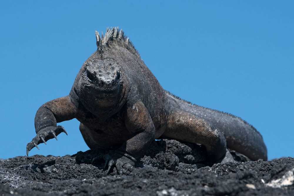 Early this morning we rounded the northwest point of Isabela Island as the sun rose on the volcanic landscape of the islands most recent lava flows. Our shore landing on Fernandina Island is hard to describe in words except for the “Land of the Iguanas.” Each step is precarious, either avoiding stepping on an iguana or avoid crevasses in recent lava flows. This is a photographer’s paradise with wildlife subjects everywhere! We spent three hours photographing some of the most unique Galapagos wildlife including the marine iguanas, Galapagos sea lions and hawks.
