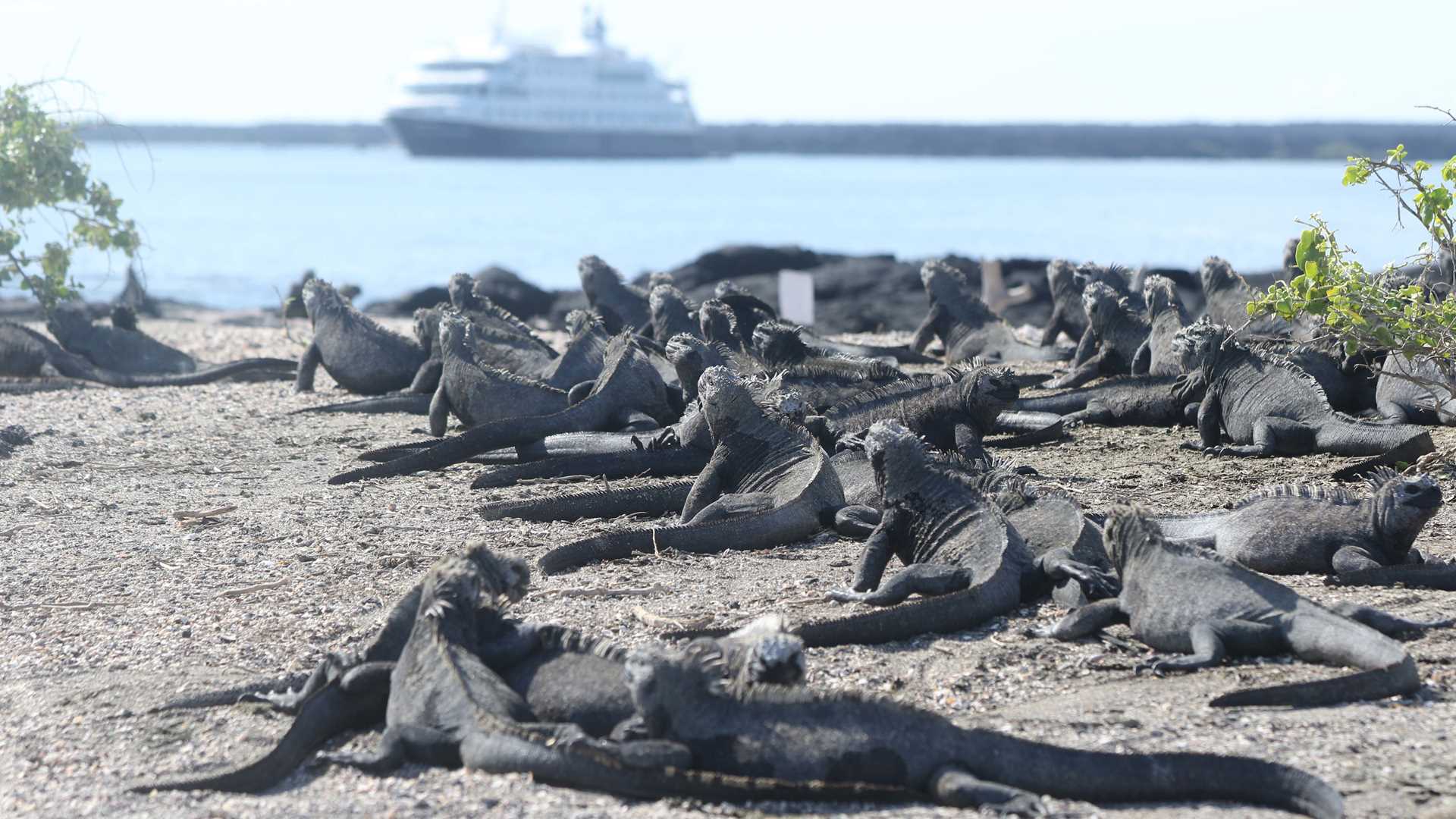 Today, National Geographic Endeavour II visited Cerro Dragon, located on the north part of Santa Cruz Island. We found one of the largest colonies of land iguanas. During our hike, we spotted the iguanas all around the trail. Some basked on the vegetation, and others were active. We saw the zigzag head movement they use to protect their territory and impress females. An Ecuadorian buffet lunch was set up in the dining room. We started with the traditional ceviche and ended with tres leches for dessert! We enjoyed snorkeling and Zodiac rides. We observed wildlife all over the place, including spotted eagle rays, sharks, blue-footed boobies, great blue herons, marine iguanas, and hundreds of other animals. They all reminded us why the Galapagos is so special.