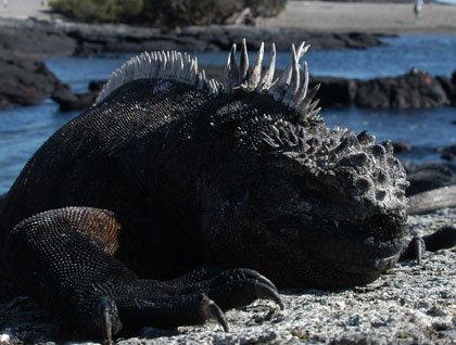 After disembarking on the small dock of Punta Espinosa, our visiting site at Fernandina, we had an encounter with not just one marine iguana, but a whole rock covered by them. Mostly motionless, they were laying on the lava rock like live statues. Every now and then an iguana sneezed, while a lava lizard moved along among them, and few iguanas had pieces of skin hanging along the sides of their body flapping in the wind. During the rest of the walk we saw several flightless cormorants, including some building a nest. It was a very funny scene as one partner arrived with a new and shiny piece of brown algae to build the nest. Its partner, and probably already its mate, was sitting on two eggs as the mate arrived, the one sitting on the nest made some sounds and the one just carrying the piece of algae just threw it by the nest. They looked at each other and the one in charge of finding nest building material just returned to the sea to look for more brown algae.