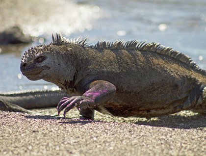 At the moment of our arrival, we were greeted by a welcome committee of marine iguanas that were covering the lava rock area. The charms of this place were revealed in a magnificent view of a landscape, decorated by a blue sea along with grandiose shield volcanoes.