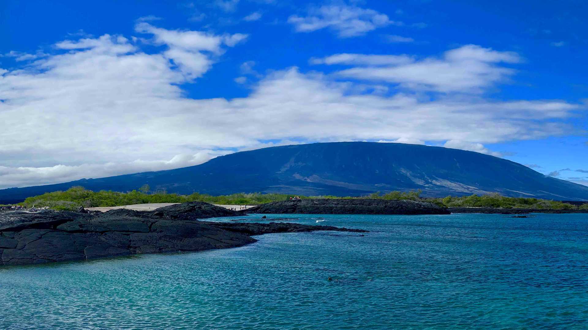 On National Geographic Endeavour II today, we explored Bartolome, home of a small colony of Galapagos penguins. Bartolome is one of the youngest islands, and it is located next to Santiago Island in the central part of the archipelago. After an amazing sunrise, we went ashore for a walk, and we were transported back to a time when the land was newly formed. We began our day by hiking to the top of a tuff cone known as the islet of Bartolome, named after the First Officer of The Beagle . Walking on this young island allowed us to understand the formation and volcanism of the Galapagos Islands. The rocks are a great way to understand the area and its geology. We spotted a few lava lizards and painted locusts, some of the very few animals on this island. As we reached the top, we had a great view. Our guests enjoyed the magnificence of Pinnacle Rock. After we visited one of the most iconic geological formations of the Galapagos, our breakfast was enhanced by dramatic views of the impressive volcanic landscape. We visited the beach near Pinnacle Rock, where we enjoyed how the sun made the sand sparkle due to a concentration of silica. Later, we went snorkeling along the channel between Santiago and Bartolome Islands. Many of our guests spotted whitetip reef sharks and very colorful parrotfish. The landscape was beautiful with lots of sea stars. We enjoyed the chance to be surrounded by Galapagos penguins and feel accepted as part of this environment. After a delicious Mexican lunch, we had lectures on the photography of reptiles and Darwin. Afterwards, we went to Chinese Hat Islet to snorkel from the Zodiacs. The area is home to a small colony of Galapagos penguins. In a sandy-bottomed, sheltered channel, our guests enjoyed swimming with whitetip reef sharks, rays, and many fish. It was a nice and sunny afternoon. After snorkeling, we had the chance to explore the unique, small volcano that formed an island in front of Santiago on a sunset Zodiac ride. After a spectacular day full of activities in the field, we returned on board. Every day in the Galapagos is an opportunity to reconnect with the beauty of nature through unbelievable encounters!