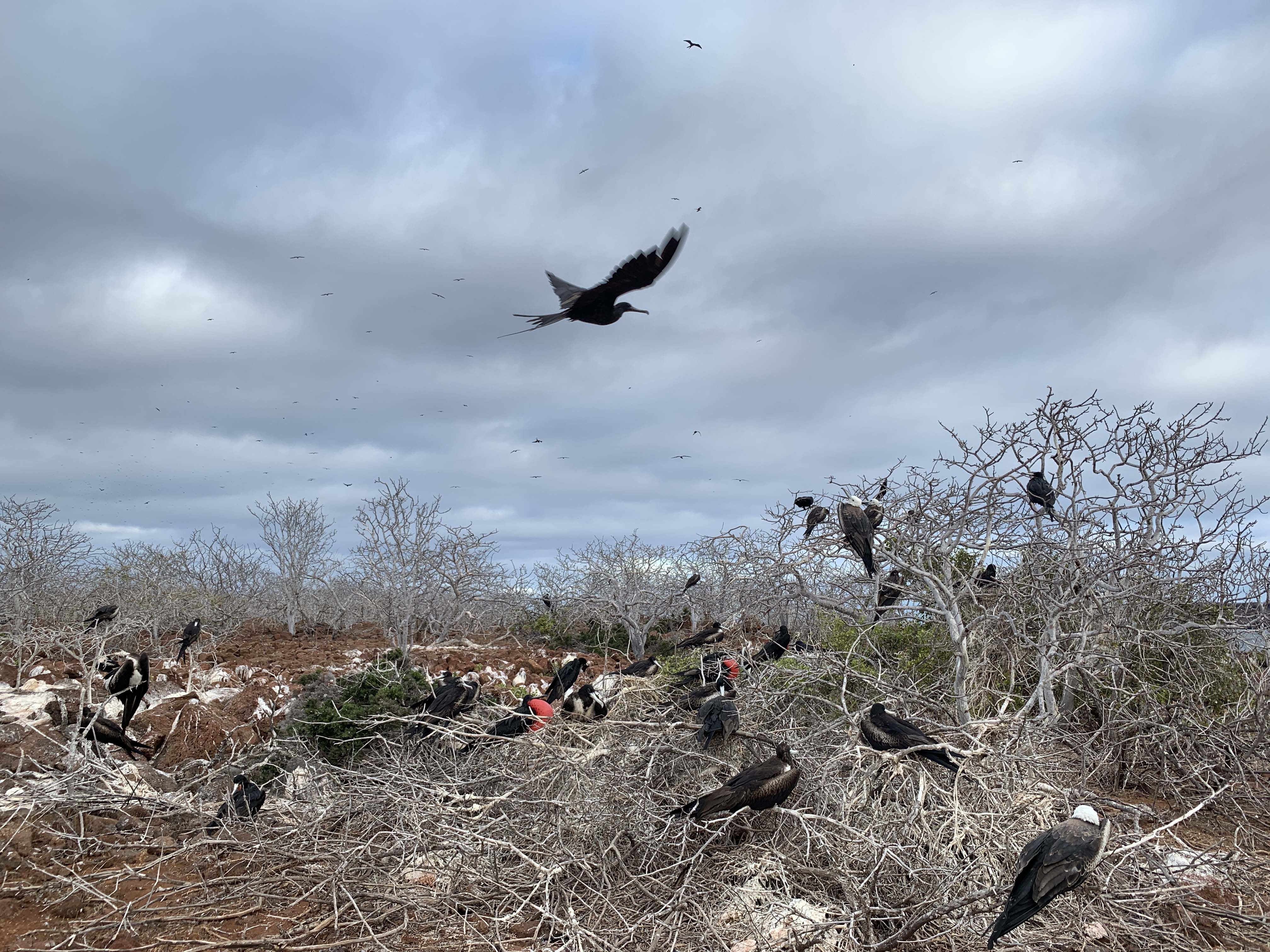 Today, National Geographic Endeavour II visited Cerro Dragon, located on the north part of Santa Cruz Island. We found one of the largest colonies of land iguanas. During our hike, we spotted the iguanas all around the trail. Some basked on the vegetation, and others were active. We saw the zigzag head movement they use to protect their territory and impress females. An Ecuadorian buffet lunch was set up in the dining room. We started with the traditional ceviche and ended with tres leches for dessert! We enjoyed snorkeling and Zodiac rides. We observed wildlife all over the place, including spotted eagle rays, sharks, blue-footed boobies, great blue herons, marine iguanas, and hundreds of other animals. They all reminded us why the Galapagos is so special.