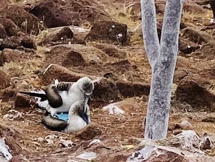 Today, National Geographic Endeavour II visited Cerro Dragon, located on the north part of Santa Cruz Island. We found one of the largest colonies of land iguanas. During our hike, we spotted the iguanas all around the trail. Some basked on the vegetation, and others were active. We saw the zigzag head movement they use to protect their territory and impress females. An Ecuadorian buffet lunch was set up in the dining room. We started with the traditional ceviche and ended with tres leches for dessert! We enjoyed snorkeling and Zodiac rides. We observed wildlife all over the place, including spotted eagle rays, sharks, blue-footed boobies, great blue herons, marine iguanas, and hundreds of other animals. They all reminded us why the Galapagos is so special.
