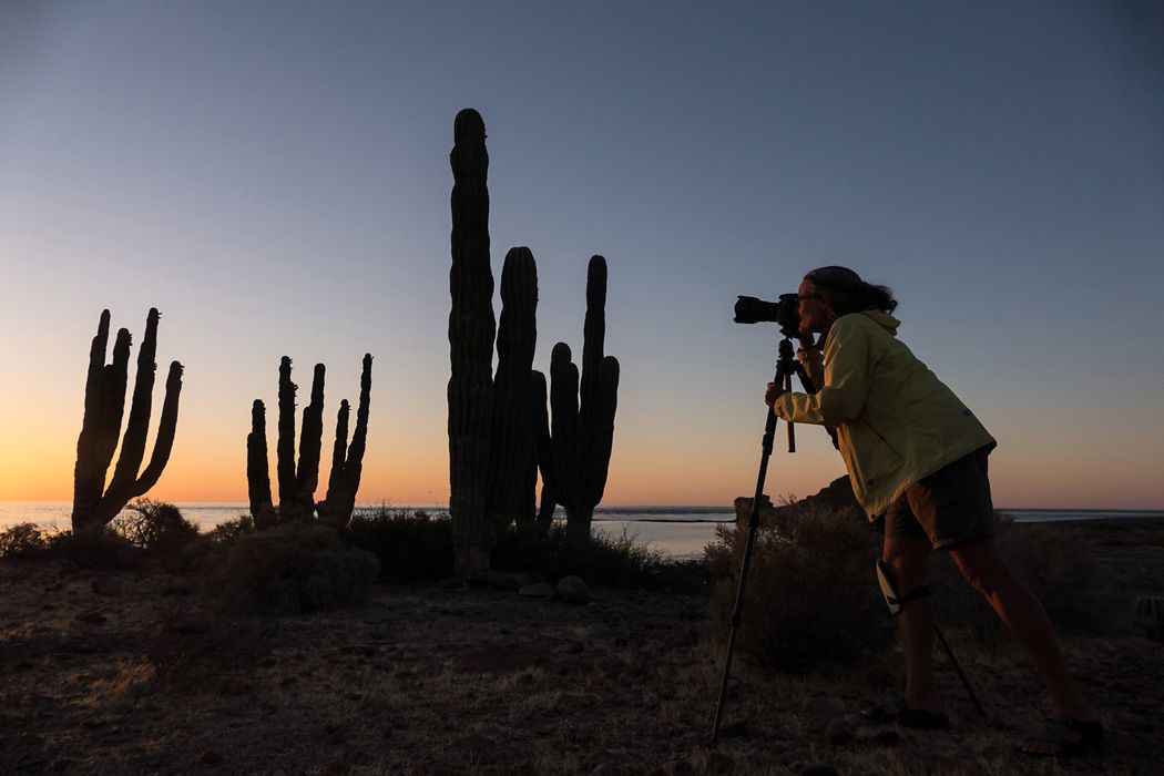 We woke up early in the morning as National Geographic Islander navigated along the northern part of Isabela Island. Slowly the sun appeared above the clouds surrounding Volcano Wolf. We spotted our first birds as Galapagos fur seals returned to shore from their night hunt. We enjoyed a great breakfast. Afterward, expedition leader Vanessa called everyone to the bow to celebrate as we crossed the equator. Our guests happily crossed the line. Approaching Punta Vicente Roca, the visitor site, we spotted Galapagos sea lions and a good number of ocean sunfish. The first activity of the day took place as we dropped anchor at Punta Vicente Roca. This is a spectacular geological site. The combination of the former volcano’s tall cliffs and the tuff cones formed later adds an amazing contrast to this unique visitor site. Our best tools for exploration, our Zodiacs, were lowered down, and off we went to explore the coast. We observed Nazca boobies and blue-footed boobies resting on the small ledges of the tuff cones. Galapagos sea lions swam close to our Zodiac, and Galapagos penguins rested on a broken piece of the tuff cone after feeding. What a wonderful sight! In a calm area, we found a good number of Pacific green sea turtles. The morning’s activities ended with snorkeling. Pacific green sea turtles, plenty of colorful fish, Galapagos marine iguanas and flightless cormorants surrounded us. It was a phenomenal experience! The ship was repositioned toward Fernandina Island. The youngest island of the archipelago, Fernandina is a highlight of our expedition. This island shows our guests the beginning of life. We observed animals thriving in the hostile environment. Pioneer plants like lava cacti grow on the lava fields, breaking down rocks little by little to create soil for the next generation of plants. Punta Espinoza is known for its huge colony of Galapagos marine iguanas. It is hard to distinguish the iguanas from rocks since they are so dark in color. On the other hand, colorful Sally Lightfoot crabs added contrast to the young, dark lava fields. We ended our walk as the sun was setting, returning to the ship with great memories. It was a fantastic day in the western part of the archipelago.