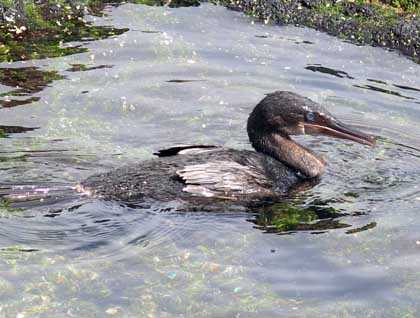 After breakfast we dropped anchor at Punta Espinosa, Fernandina Island. This is the youngest island, which looks barren with its shield volcano, showing us how hostile this environment is. We disembarked on the small pier, and immediately we observed several species that have managed to colonize this barren area. Marine iguanas in particular seem to do really well here. Along the trail we observed hundreds of them as petrified rocks basking in the sun, as if adoring it. As soon their bodies warmed up some of them started their way into the ocean to feed on algae, their main diet and the reason they are unique in the world. We observed Galapagos hawks flying and landing on the top of mangrove trees, while in the shallows, flightless cormorants, penguins, and sea turtles captivated our attention for their tameness and uniqueness. It was as if we were observing an unchanged place that remained inalterable for millions of years.