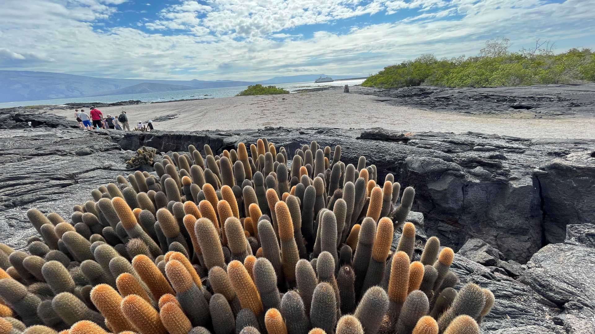 We arrived at Fernandina Island in the early hours. After breakfast, we boarded Zodiacs and went ashore for a morning walk on Punta Espinoza where we spotted large clusters of Galapagos marine iguanas on the lava flow.