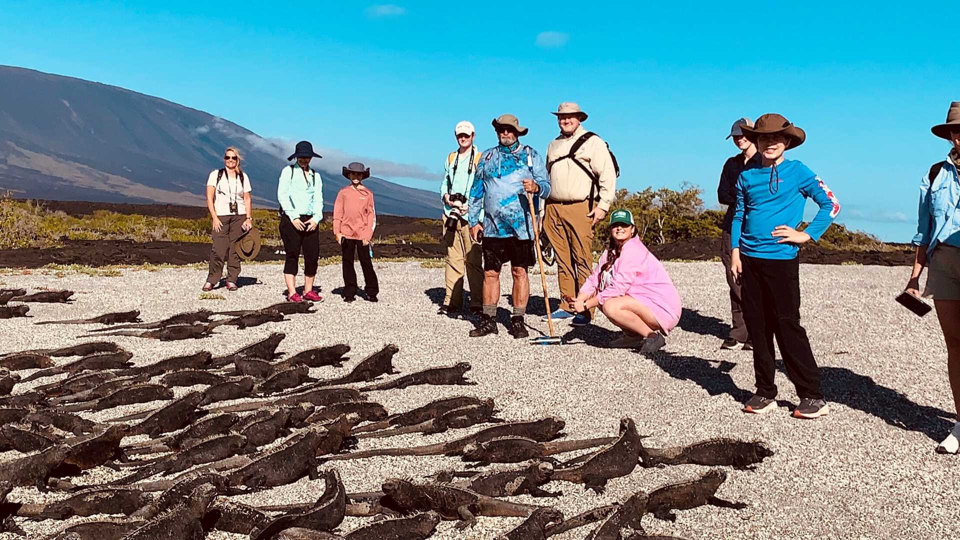 Today, National Geographic Endeavour II visited Cerro Dragon, located on the north part of Santa Cruz Island. We found one of the largest colonies of land iguanas. During our hike, we spotted the iguanas all around the trail. Some basked on the vegetation, and others were active. We saw the zigzag head movement they use to protect their territory and impress females. An Ecuadorian buffet lunch was set up in the dining room. We started with the traditional ceviche and ended with tres leches for dessert! We enjoyed snorkeling and Zodiac rides. We observed wildlife all over the place, including spotted eagle rays, sharks, blue-footed boobies, great blue herons, marine iguanas, and hundreds of other animals. They all reminded us why the Galapagos is so special.