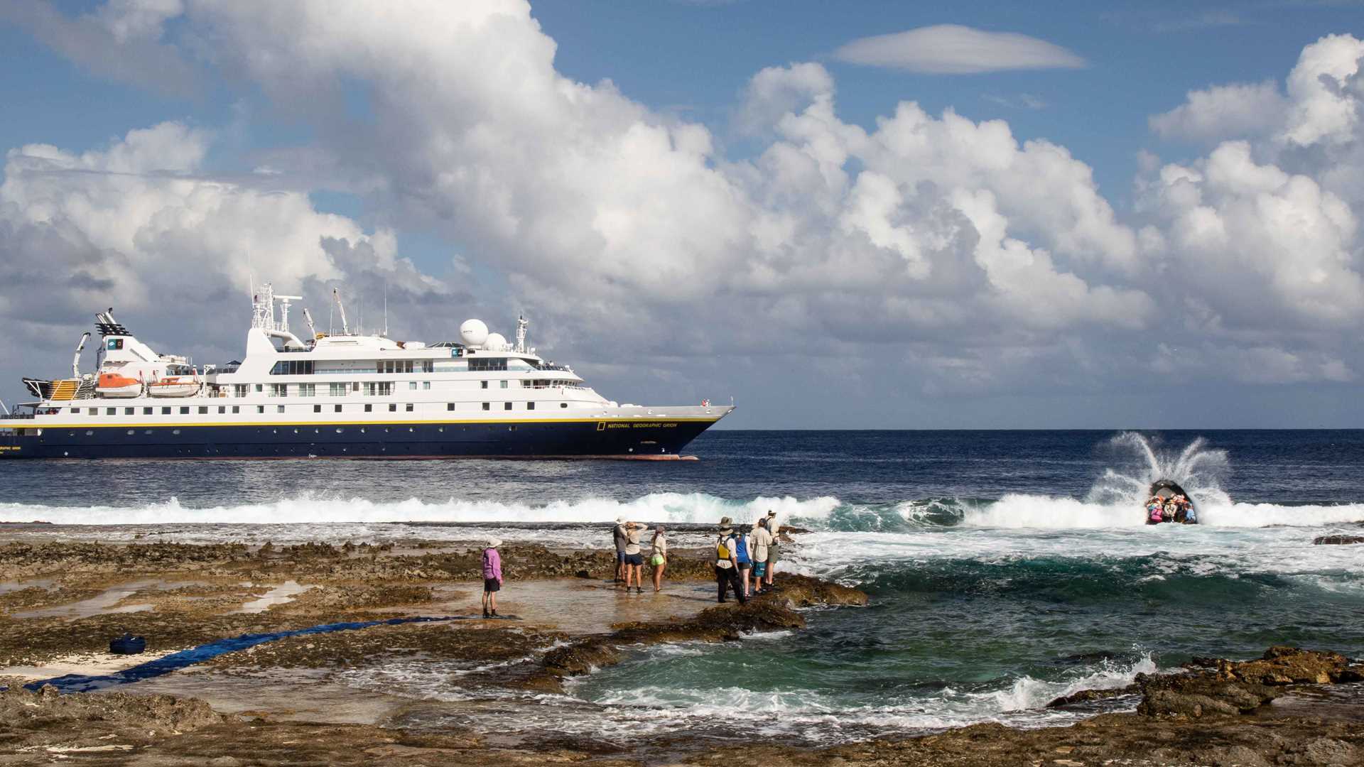 This morning we woke in sight of Flint Island, a remote and small island in the Southern Line Islands some 400 nautical miles northwest of Tahiti. As we made our way closer to the island several guests were fortunate to look out and see a double rainbow glowing across the horizon.
