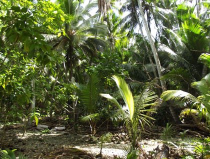 Our expedition stop today lacked the desperation of Magellan’s visit so long ago, but we were no less excited to be here. We made a landing right after breakfast onto the exposed reef flat and spent a couple hours or so exploring this densely vegetated island with an amazing, hard-packed coral rubble beach all around the outer edge. Flint Island is not a typical atoll, although it has the same general geological history. The original volcanic structure that gave rise to the island has long ago eroded and/or subsided deep below the present sea level, thus allowing coral growth to completely cover the structure near the surface, and even build up a sand island in the center. There is no central lagoon…it is just a long, narrow island (about 4 km by 0.8 km, or 2.5 miles by 0.5 mile) surrounded by a reef flat and a vibrant coral reef. Those who went ashore this morning were able to walk on the beach and meander through the narrow band of tournefortia bushes that seemed almost as though they had been planted for someone’s pleasure. Most of the island is covered with coconut palms, including both mature trees and countless thousands of sprouted coconuts that have filled in most of the gaps between the trees. Inside the palm forest, we were able to view many white terns and black noddy terns perched or nesting overhead in the Cordia trees, as well as lots of tiny skinks crawling around the leaf litter. The most exciting creatures spotted onshore must surely have been the immense coconut crabs. These impressive beasts are the largest terrestrial arthropods on Earth. They can tear open coconuts with their huge pincers! Imagine if one of them got hold of you in anger. The shore people also got to watch young black-tipped reef sharks swimming around in the large, open tide pools as they chased mullet schools.