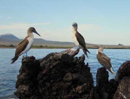 Once we reached the other side of the bay, the white sandy beach contrasted with the greenery of the first one. We observed fresh sea turtle’s tracks everywhere. Females obviously were here last night, laying their eggs, and early in the morning before dusk they returned to the ocean to start a long journey through the Pacific Ocean. As soon as returned to the National Geographic Endeavour, we started our navigation to our next destination: Champion Islet. Once we arrived, we started our adventure with a delightful Zodiac ride along the coastal zone of Champion Islet; along the shore, playful Galapagos sea lions wrestled with each other and nipped at the edges of our Zodiacs. We navigated to the cliff area, where we enjoyed the presence of lots of sea birds make their nests here. Just as we were getting ready to return to the ship, we finally had the opportunity of sighting one of the rarest birds of the Galapagos: the Floreana mocking bird. These birds are highly endangered, with less than 500 individuals, due to predation at the hands of introduced animals. After our Zodiac ride activity, we returned to Champion for deep water snorkeling. As soon as we entered the water, the marvels of the Galapagos Marine Reserve were revealed to us: colorful reef fishes of different species were swimming from rock to rock, but the most emblematic creature of all was definitely the Galapagos sea lions, that showed off their excellent swimming skills, darting all around and coming very close to us.
