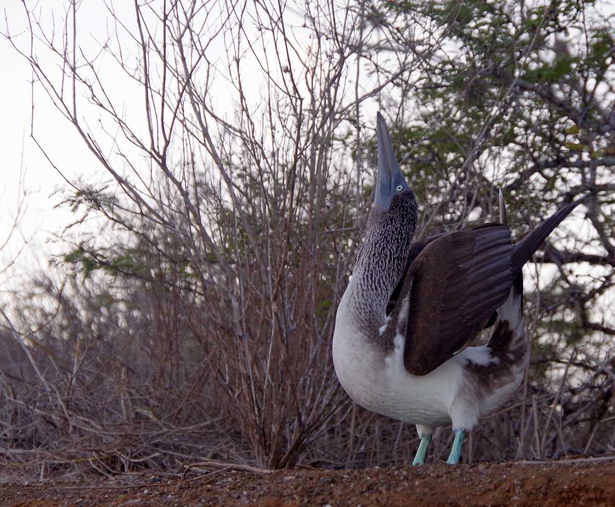 Floreana, also known as Charles Island or the Island of the Thousand Volcanoes, is one of the older islands located on the southern part of the Galapagos archipelago. Darwin visited Floreana in 1835 and the observation of the unique Floreana mocking bird brought him closer to his theories of the evolution of living organisms. This morning we had an early outing before breakfast, disembarking at Punta Cormorant. We walked along the green sandy beach coming very close to blue footed boobies—one male was dancing, trying to get the attention of the females, another one was nesting, and others were flying up in the sky, trying to get the first meal of the day. The temperature was lovely as we headed further inland, passing by a brackish water lagoon where we observed several greater flamingoes. The landscape at this visitor site is just breathtaking! There are thousands of colors and contrasts, making for great landscape pictures. On the white sandy beach, there was evidence of Pacific green sea turtles nests.