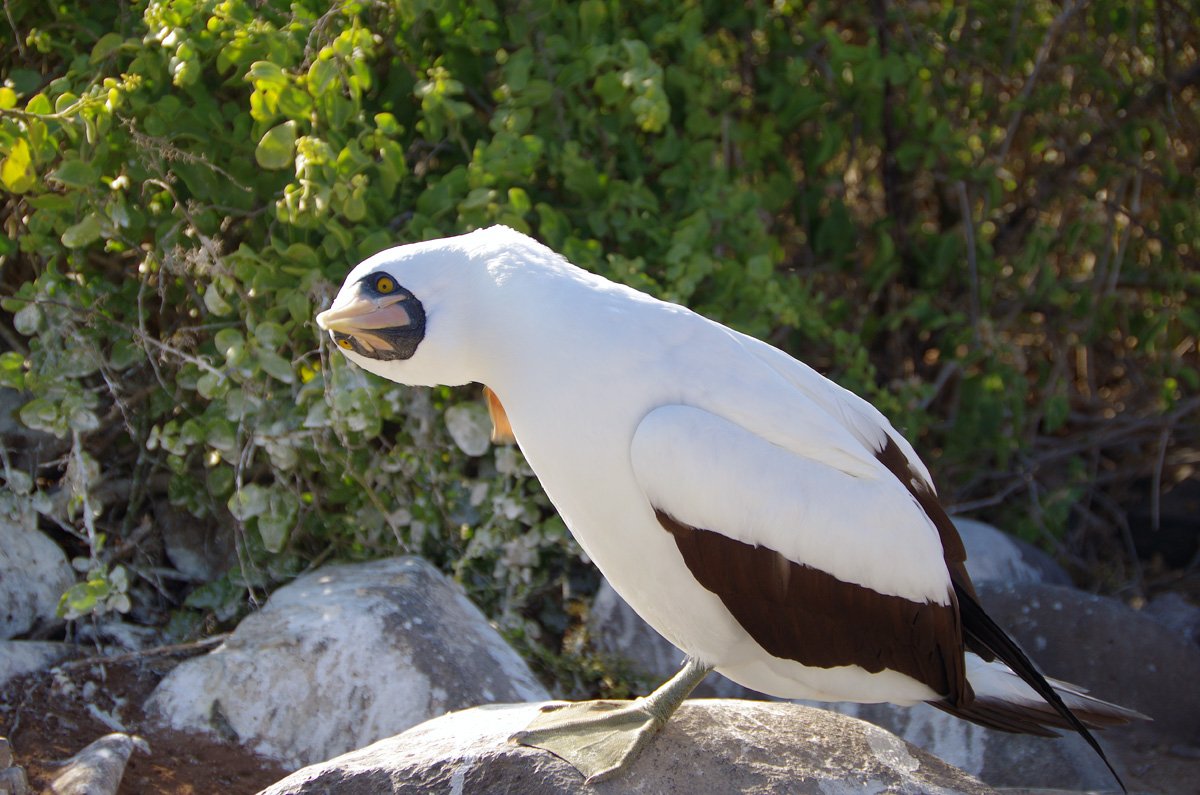 After breakfast we got ready for a Zodiac ride around champion islet. Each island in Galapagos offers the opportunity to see new species of animals, new surprises. The islands are so different among them and their endemism is high; at Champion you can observe many sea birds like swallow-tailed gulls, red-billed tropic birds, frigates, Nazca boobies, shearwaters, and petrels. But our main goal is to find the unique species of mockingbirds found here, one of the original specimens that Darwin collected when he visited the islands in 1835. Today they are difficult to find, as they are in danger of extinction, and we have only a few dozen left, and they are only found here.