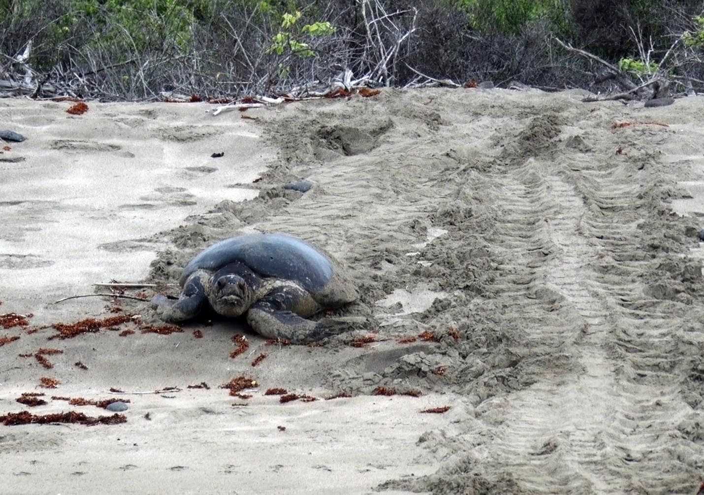 We left behind Espanola and after a long navigation to the west, the National Geographic Islander dropped anchor at Punta Cormorant, Floreana Island. Early in the morning we headed to the landing beach, its green color contrasted with the blue sky and the dry vegetation along the hills. We observed the lagoon behind, where some flamingos fed on small crustaceans, such as tiny copepods and shrimp, close to the shore. White cheeked pintails swam indifferently while blue footed boobies and pelicans tried to catch some fish. Walking inland we arrived at the white beach, its soft sand having received the visit of dozens of sea turtles who every night come here for nesting and abandon the island early in the morning. Everywhere we walked we observed sea turtle tracks and their nests and we even observed some of them swimming along the shallows. When we arrived at the end of the beach, a juvenile Galapagos penguin swam by with its head in the water looking for small fish such as “salemas”. He disappeared underwater and swam so fast that it resembled a small torpedo.