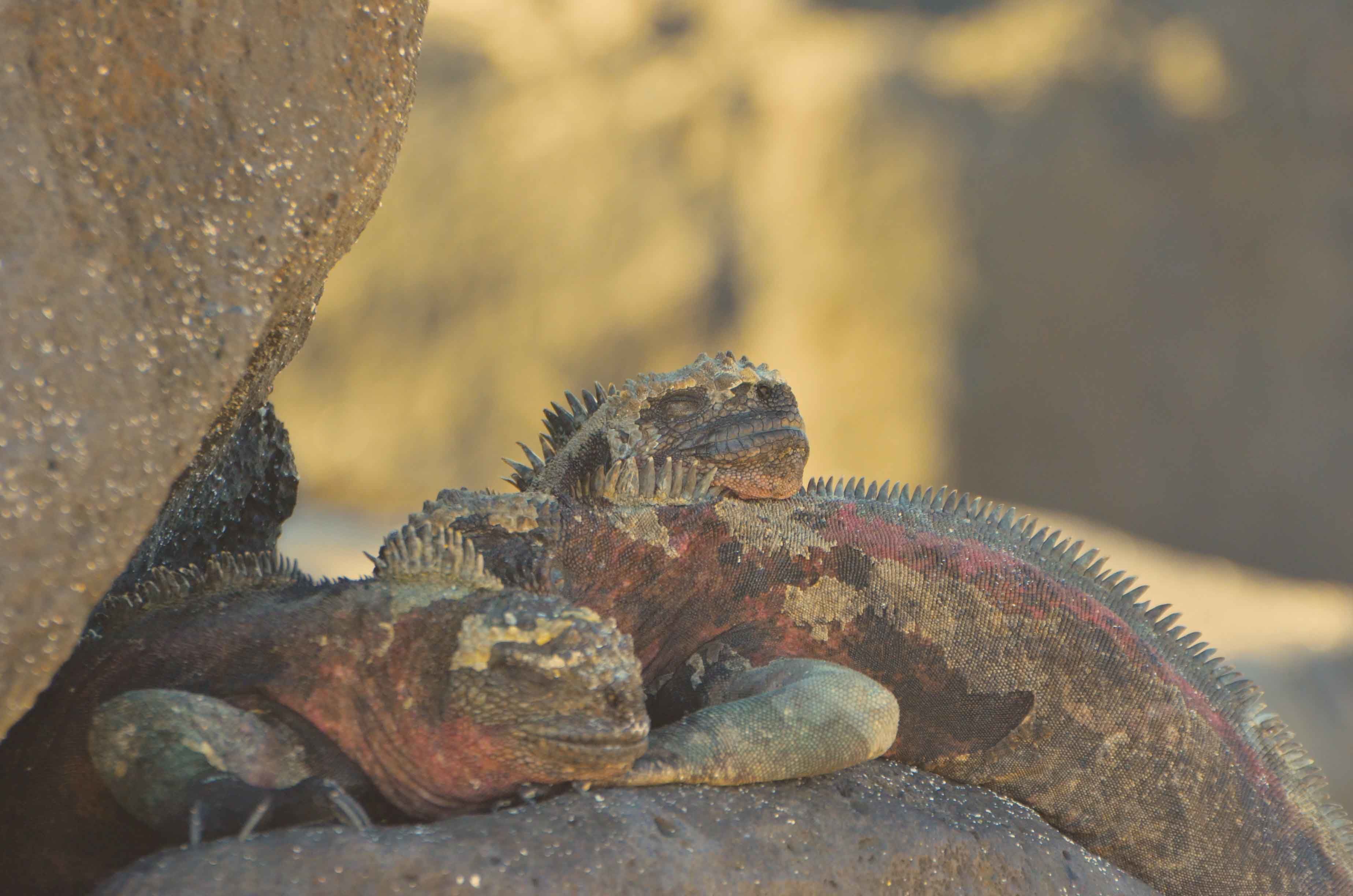 We woke up early in the morning as National Geographic Islander navigated along the northern part of Isabela Island. Slowly the sun appeared above the clouds surrounding Volcano Wolf. We spotted our first birds as Galapagos fur seals returned to shore from their night hunt. We enjoyed a great breakfast. Afterward, expedition leader Vanessa called everyone to the bow to celebrate as we crossed the equator. Our guests happily crossed the line. Approaching Punta Vicente Roca, the visitor site, we spotted Galapagos sea lions and a good number of ocean sunfish. The first activity of the day took place as we dropped anchor at Punta Vicente Roca. This is a spectacular geological site. The combination of the former volcano’s tall cliffs and the tuff cones formed later adds an amazing contrast to this unique visitor site. Our best tools for exploration, our Zodiacs, were lowered down, and off we went to explore the coast. We observed Nazca boobies and blue-footed boobies resting on the small ledges of the tuff cones. Galapagos sea lions swam close to our Zodiac, and Galapagos penguins rested on a broken piece of the tuff cone after feeding. What a wonderful sight! In a calm area, we found a good number of Pacific green sea turtles. The morning’s activities ended with snorkeling. Pacific green sea turtles, plenty of colorful fish, Galapagos marine iguanas and flightless cormorants surrounded us. It was a phenomenal experience! The ship was repositioned toward Fernandina Island. The youngest island of the archipelago, Fernandina is a highlight of our expedition. This island shows our guests the beginning of life. We observed animals thriving in the hostile environment. Pioneer plants like lava cacti grow on the lava fields, breaking down rocks little by little to create soil for the next generation of plants. Punta Espinoza is known for its huge colony of Galapagos marine iguanas. It is hard to distinguish the iguanas from rocks since they are so dark in color. On the other hand, colorful Sally Lightfoot crabs added contrast to the young, dark lava fields. We ended our walk as the sun was setting, returning to the ship with great memories. It was a fantastic day in the western part of the archipelago.