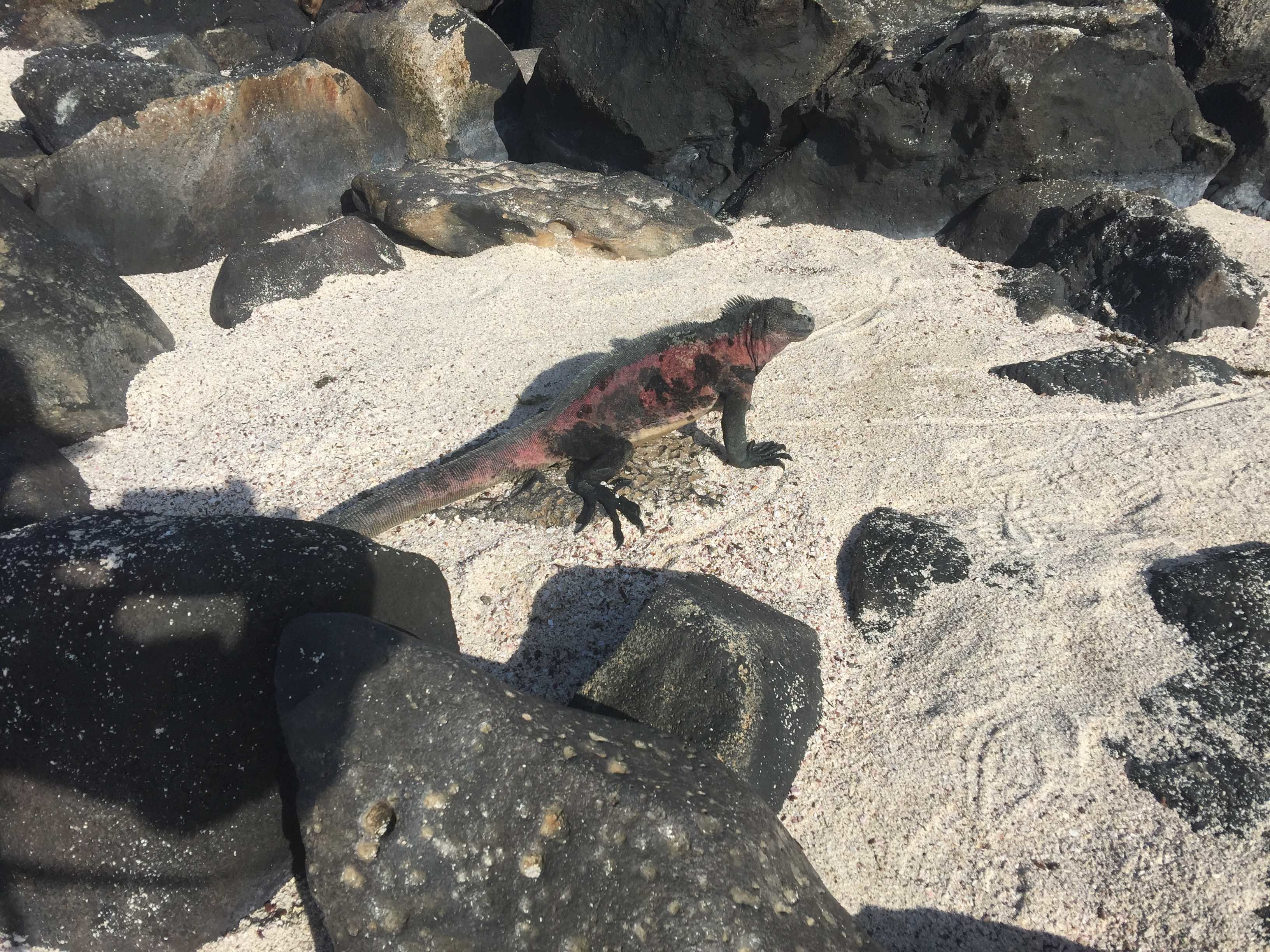 Today, National Geographic Endeavour II visited Cerro Dragon, located on the north part of Santa Cruz Island. We found one of the largest colonies of land iguanas. During our hike, we spotted the iguanas all around the trail. Some basked on the vegetation, and others were active. We saw the zigzag head movement they use to protect their territory and impress females. An Ecuadorian buffet lunch was set up in the dining room. We started with the traditional ceviche and ended with tres leches for dessert! We enjoyed snorkeling and Zodiac rides. We observed wildlife all over the place, including spotted eagle rays, sharks, blue-footed boobies, great blue herons, marine iguanas, and hundreds of other animals. They all reminded us why the Galapagos is so special.