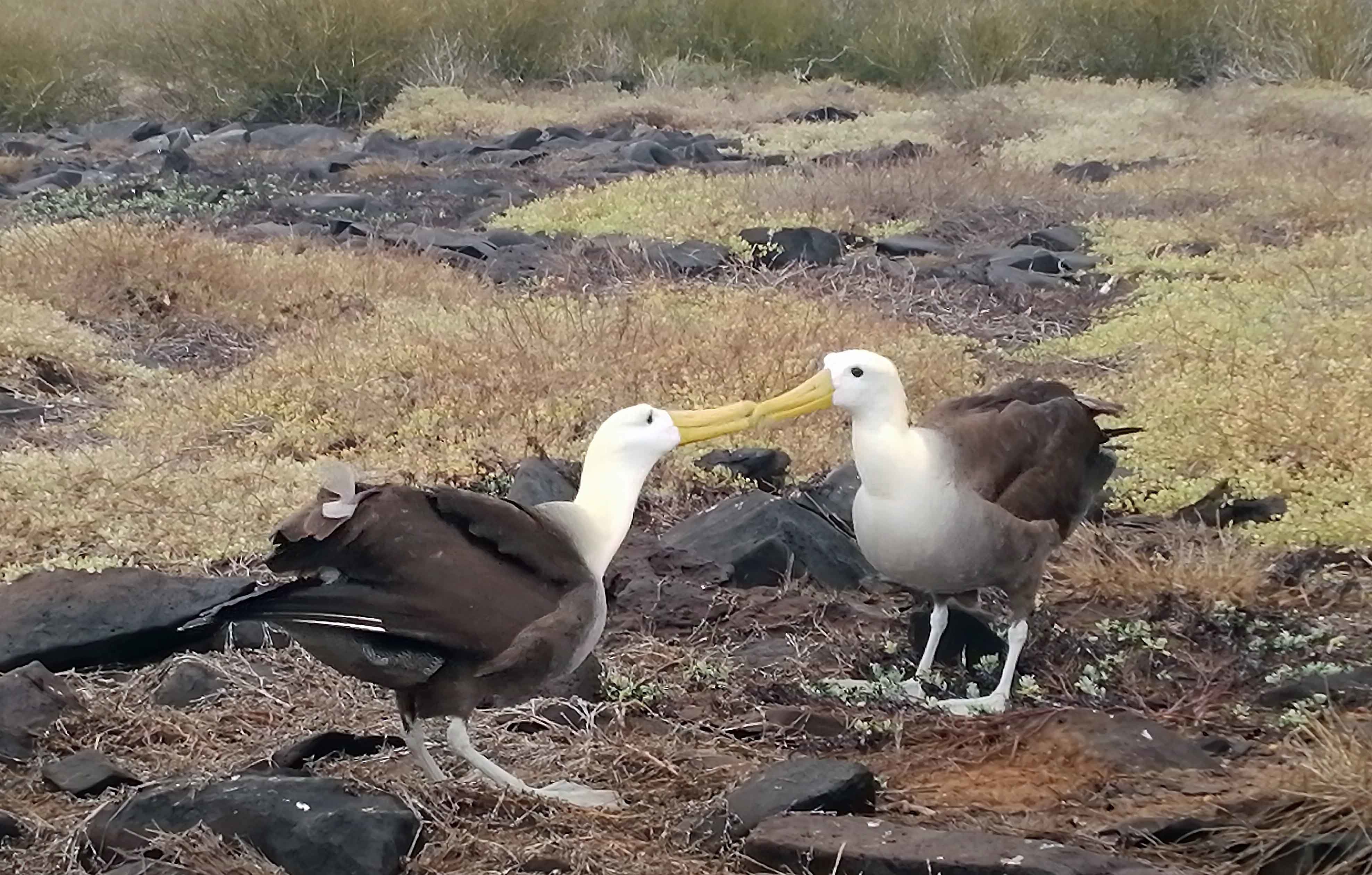 After being gently rocked to sleep by the waves, the guests of the National Geographic Endeavour II rose early to take full advantage of a walking or photography stroll on the Island of Floreana. Before the Zodiacs reached the shore, we were greeted by a playful Galapagos sea lion. As many guests completed their first wet landing of the expedition, cameras were quickly assembled to capture every magical moment of wildlife interaction. Early morning sightings included a comical stare off between blue-footed boobies and human photographers, two endemic Floreana plants: lecocarpus and the scalescia, a variety of Darwin’s finches, and the greater flamingo. Witnessing these pink birds take flight before us created a lasting imprint on the hearts and minds of our guests. The local menu of nutrient-rich shrimp creates the vibrant pink color. The finches gathered around our naturalist as he impressed us with his bird-calling abilities. Some guests took advantage of an early morning spa treatment, incorporating the natural Floreana mud to moisturize their weary feet.