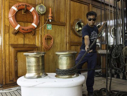 We woke up to watch the raising of the sails. It was not too windy, so the crew raised all of he square sails and some jibs and staysails. We all were impressed at the beauty of the Sea Cloud, as we sailed until lunchtime and felt like ancient mariners who depended on Poseidon and Aeolos to get to their destination.