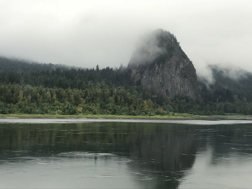After days of sunshine and warm temperatures, the “raincoast” delivered some authentic fall weather today. The day started with a thick fog as we cruised into Friday Harbor and cleared Customs. By the time we reached Lime Kiln Lighthouse on the west side of San Juan Island, the fog had lifted, giving us picturesque views of the Strait of Juan de Fuca with Vancouver Island silhouetted along the horizon. We were able to tour the gorgeous lighthouse that, in addition to still being operational, serves as an interpretive spot for the southern resident orca whales that frequent the area. In recent years, this unique population of whales has shrunk to 73 individuals due to a variety of reasons, especially decreased salmon populations. In the evening, two members of the Center for Whale Research came aboard to discuss their most recent findings and what must be done to ensure that these intelligent and charismatic animals continue to populate these waters for generations. The San Juan Islands are also home to a little-known piece of U.S./U.K. history. Known as the Pig War, a nonviolent confrontation over the border took place between the two countries. It was settled after much dispute. For twelve years, American and British camps occupied opposite sides of the island until an arbitrator ruled in favor of the Americans, and the border was drawn in Haro Strait, west of San Juan Island. The sites of the two camps are now national parks, and the eerie fog that drifted up the treeless hills added to the overall environment, reminding us that, despite the dry weather, fall and Halloween are right around the corner.
