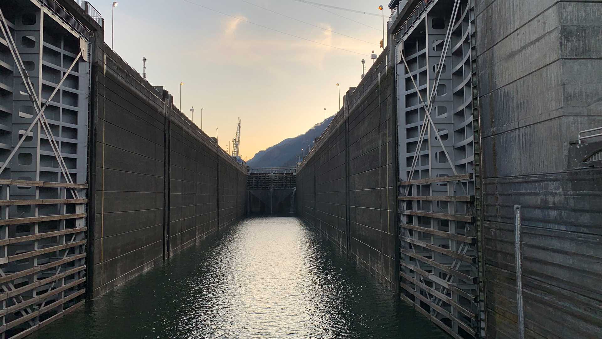 As dawn broke, we approached the Bonneville dam and lock, the oldest of the area, off the Columbia River. Aligning ourselves with the 672’x85’ concrete lock, guests from all over the United States and abroad, emerged excited and armed with fresh coffee and early winter gear to claim witness the massive hoisting of National Geographic Quest over 60 feet up and away from the tidewaters of the Pacific Ocean. Guests gazed in awe as we safely traversed the first of eight historic dam and locks systems on the Columbia River.