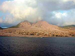 The Emerald Island of Montserrat suffered terrible bad luck in having a volcano that had not signaled any form of life until 1995. Steam, heat and tremors commenced, and the authorities began taking steps to protect life on the island. But the progression into violence by the volcano did not take long, and eventually the capital, Plymouth, was evacuated. Some time later, due to a very severe storm, the refugees were allowed to return. But on Christmas day of 1997, the volcano, which had grown spectacularly, simply fell apart in a violent eruption of steam, rocks, and ashes, at a very high temperature (600 degrees C), and started its mad race downhill, in the form of a pyroclastic flow. It covered the city, destroying all the flammable materials, and covered the island with incredible amounts of ashes, which collapsed many roofs and caused a large series of accidents. Although the airport was rapidly destroyed, life kept its pace, slower, but firm, with the help of many peoples of the world. Today the country has not recovered, as so many buildings, including hospitals, schools and government offices were destroyed. But the people have moved away from all the areas that are still dangerous, as the volcano is quite alive, steaming and producing small pyroclastic flows every so many months. Steam is always visible!