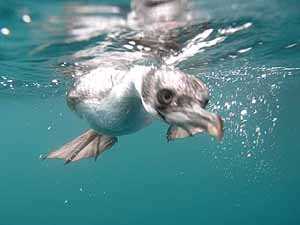 Shags, or cormorants (the title dependant on what continent you are from) nest on steep cliffs or exposed rock formations, and build their nests of seaweed, moss, or lichen. They are mainly fish eaters, and can dive to depths of 150 feet in search of their prey. This picture is of a juvenile bird: this year’s fledging chick. During an encounter with 4 different birds, it was quite obvious that they did not quite know how to feed yet, as they dove down to bite fins, picked at the dry suit, and poked at the camera-housing lens in hopes of a meal. But give them a few weeks of practice, and they will be diving just as well as Mom and Dad.