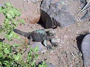 The marine iguana is referred as the only sea-going lizard in the world. They are found in all the islands where rocky shores are present. They have great abilities to swim and dive which they do to depths well over 36 feet and may remain submerged for about 60 minutes! These animals are able to perform such dives by slowing their heartbeat; the metabolism allows them to work without renewing supply of oxygen for a significant period of time.
