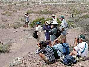 Saline flats dotted with salt-tolerant plants stretched back from the landing site at Isla San Francisco to a narrow path that climbed through a lovely little valley alive with desert vegetation. Lemon-yellow blossoms of prickly pear cactus seemed so delicate next to the coarse, prickly pads that supported them. Clusters of red blossoms adorned the gnarled branches of palo adan, or Adam's tree, a close relative of the ocotillo found farther north. The tubular flowers attract hummingbirds, and we were lucky to spot one flitting by in search of nectar. Golden pollen dusted the hummer's forehead, evidence of repeated visits to this rich food source. It was a female Costa's, and we watched intently (see photo above) as she darted into a cholla cactus just at the edge of the salt flats. To our delight, she settled into her tiny cup-like nest where two even tinier white eggs lay side-by-side. One of the joys of exploring Baja California is to take advantage of the more subtle sightings as well as the more conspicuous.