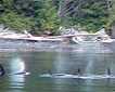 Shortly after breakfast we discovered a remote bay at the extreme far end of Mussel Bay where a huge waterfall cascaded all the way down to the sea. The low tide exposed enough of the shore that we decided to launch the Zodiacs and kayaks to explore the area more closely from sea level. Before we had even ventured off the Sea Bird, a group of Dall's porpoises came in close to the ship to investigate our activities. We all marveled from the deck while these graceful black and white animals literally swam circles around the ship.