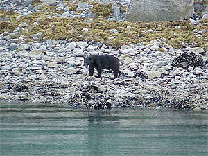 Skies cleared in the afternoon as we went ashore by Zodiac. The lofty Fairweather Range glowed in the sunshine. Highest coastal range in the world, these mountains still nourish the glaciers of Glacier Bay. Indeed, the mighty Brady Glacier, sloping down from the high country, has advanced inexorably even as Glacier Bay has emptied of ice.